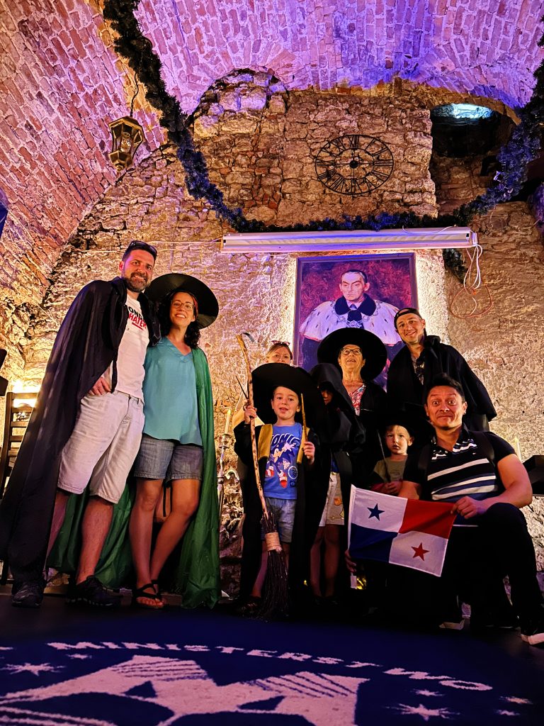 Uno de los momentos más divertidos del día fue nuestra visita al famoso bar café inspirado en Harry Potter. Allí, no solo disfrutamos del ambiente mágico, sino que también nos disfrazamos con capas y accesorios, logrando unas fotos realmente memorables.